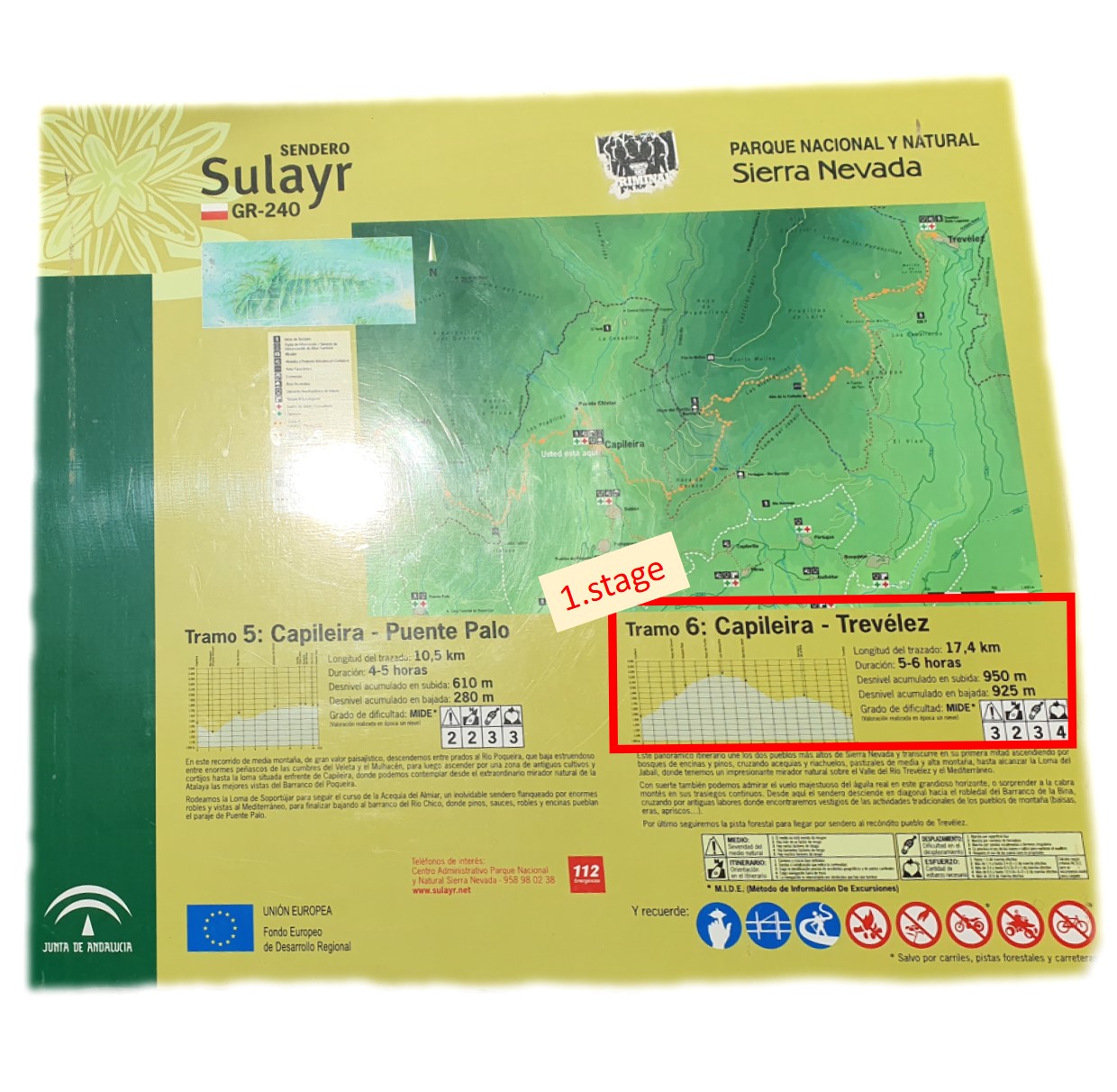We are continuing without further delay and very soon we are reaching the first notice board of the Sulayr trail which offers a structured information about our first stage. My desperation is replaced by euphoria – we are here. We are at the beginning of our journey. Let’s do it!