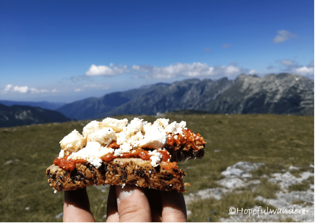 U pojídání chlebu s oblíbenou místní pochutinou – ajvarem a balkánským sýrem si užíváme pohled na trasu, kterou jsme v minulých dnech pokořili. Co nás čeká dál ale podle krajinného rázu rozluštit nedokážeme…doufáme jen, že už žádné další stoupání.