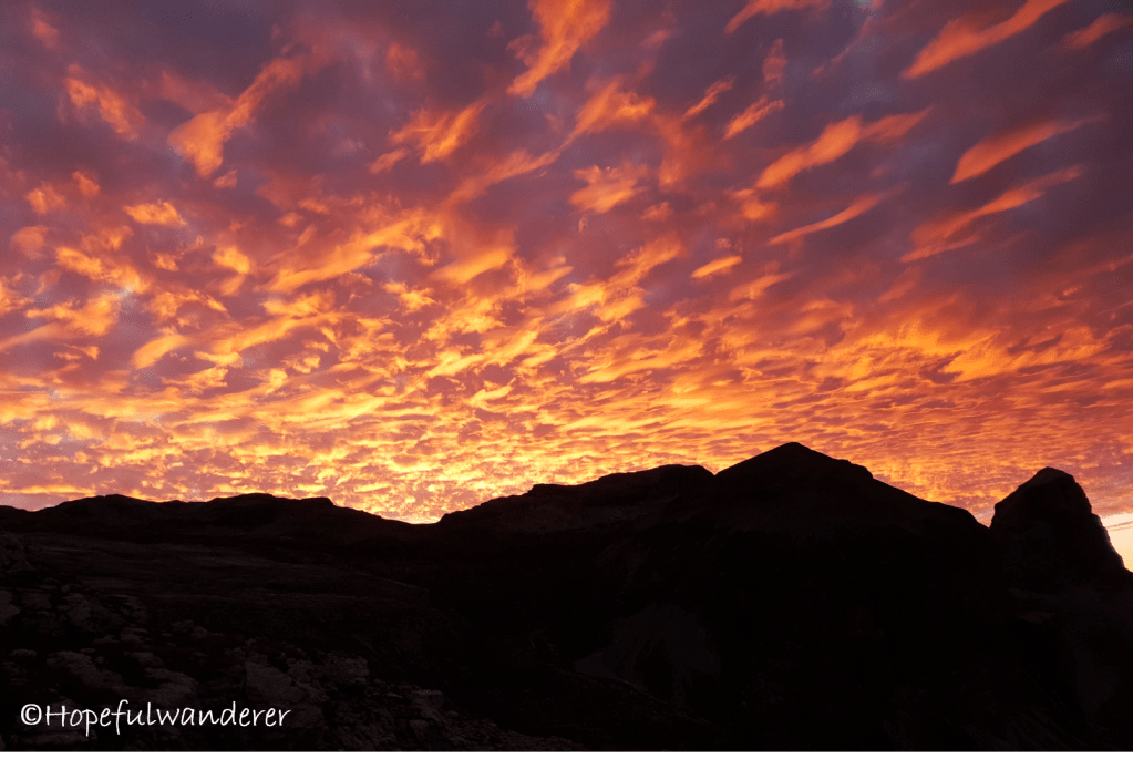 Zpočátku se dnešní den jeví naprosto pohodově, až idylicky. Hned po probuzení se mi nabízí pohled na neuvěřitelně překrásnou oblohu. Plují po ní stovky ohnivých pírek, která se postupně rozplývají ve fialovém moři nekonečna. Vychutnávám si svou ranní kávu a užívám si tento nevšední pohled, zatímco Tomáš ještě chrní.