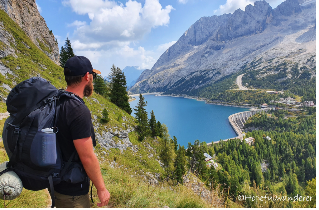 U jezera si dáváme další pauzičku dne. Slunečné paprsky rychle mizí a doposud modrou oblohu zaplavují zlověstné černé mraky. K tomu slyšíme přibližující se hromy. Nacházíme se v dolině mezi dvěma skalními masivy, přičemž z každého z nich se na nás ženou bouřkové mraky. Je téměř jasné, že se střetnou přímo nad našimi hlavami. No sakra! A co teď? Jak já nemám ráda bouřky. Další čas už neztrácíme. Navlékám si pláštěnku a nepromokavé kalhoty a vydáváme se vzhůru vstříc skalnímu obru se sladkým jménem – Marmolada. Doufáme, že nám poskytne útočiště a vhodné místo na zakempení se. A snad hodně brzy…