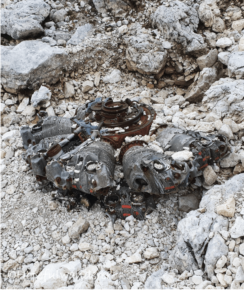 Cestou narážíme na další pozůstatky letecké nehody z roku 1957. Letadlo Lockheed P-2V6 Neptune tehdy v nadmořské výšce 2,650 m.n.m narazilo do horské stěny skalního masivu.