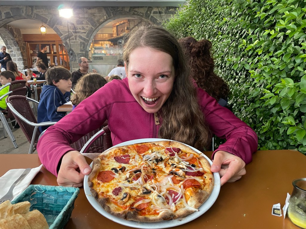 Propukla strašlivá bouřka, a tak jsme byli vcelku rádi, že zrovna nejsme v horách. Večer jsme si dopřáli nějaké ty kalorie v podobě předkrmu – patatas bravas a pizzy a upadli jsme do bezvědomí.
