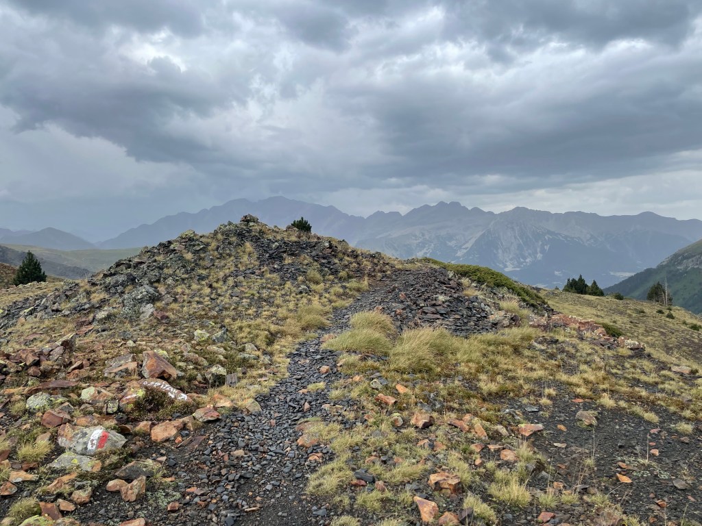 Za sedlem je malé refugio (budka), kde bych mohla nocovat a taky za ním řádí bouřka. Potkávám tu dalšího HRPéčkaře Javiera. Na Španěla (a to nemyslím nejak zle, ale je to prostě fakt…) má dost dobrou angličtinu. Vypadne z něj, že pobýval nějakou dobu ve Státech. Taky šel i GR11 před 2 lety, a tak sdílíme naše zkušenosti. V budce se mi ale nelíbí a navíc mi přijde na kempení brzo, a tak se loučím s Javierem a navzdory dešti se vydávám dál. Mám štěstí, déšť brzy ustane a bouřka se odkloní.