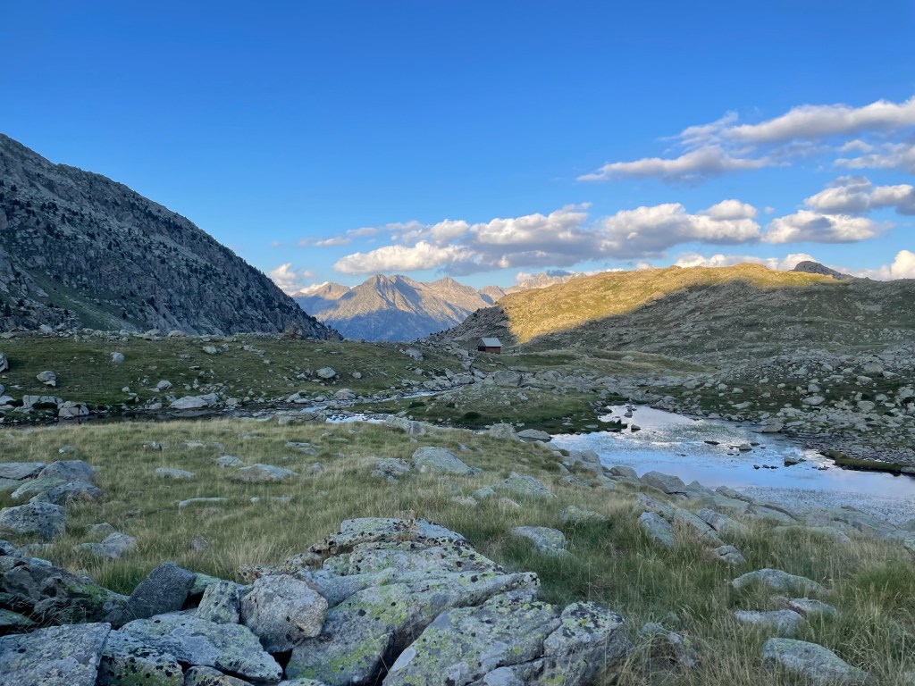 Výstup do sedla Collada Vallibierna (2732 m.n.m.) mi dal dost zabrat. Nějak mi dochází energie, asi budu muset zvýšit příjem jídla. Pod sedlem bylo nepříjemné (mé neoblíbené) suťové pole. Značení v něm pokulhávalo a člověk si musel tak nějak sám hledat svou cestu. Na sedle potkávám španělskou rodinku s třemi vcelku malými dětmi. Jsem překvapená, že se pustili do takového vcelku náročného přechodu, ale zjevně jim nedělá problém.