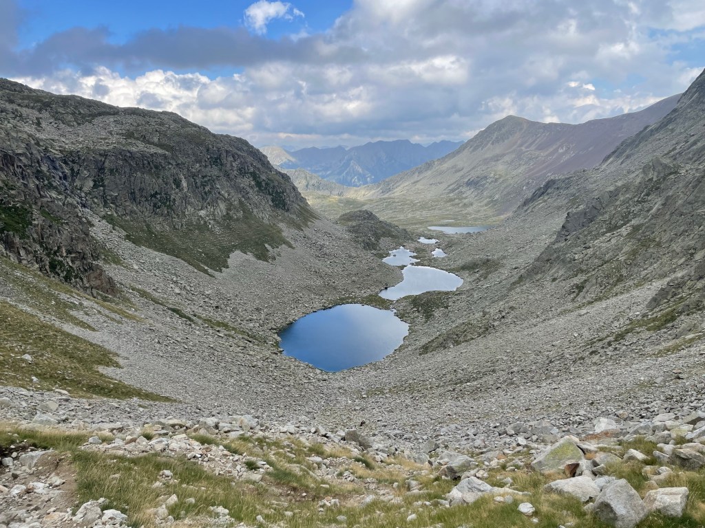 Ráno prší. Naštěstí přestane alespoň na balení stanu. To se rozhodně cení. Přelézáme sedlo, které jsme včera už nezvládli a slézáme dolů přes suťovisko, který mi dává zabrat víc, než…